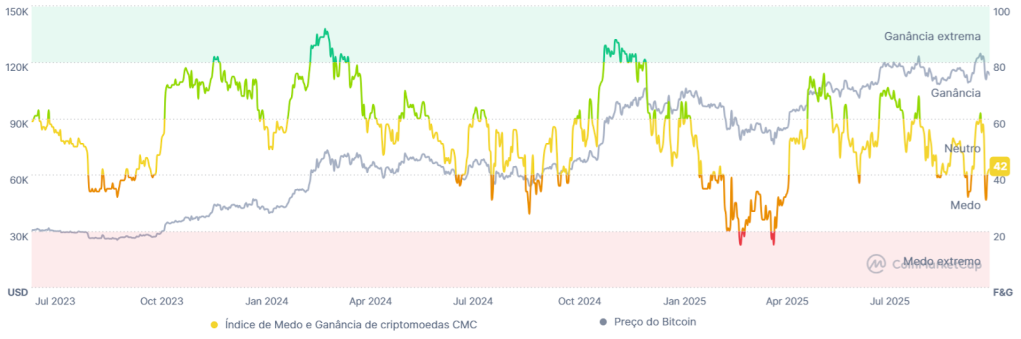 Indicador “Medo e Ganância” de criptomoedas em outubro/2025. Fonte: CoinMarketCap