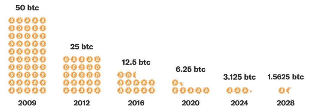 Efeito do halving do Bitcoin na produção por bloco. Fonte: Bookmap